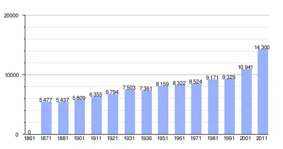 | Variação demográfica do município entre 1861 e 2011[3] |