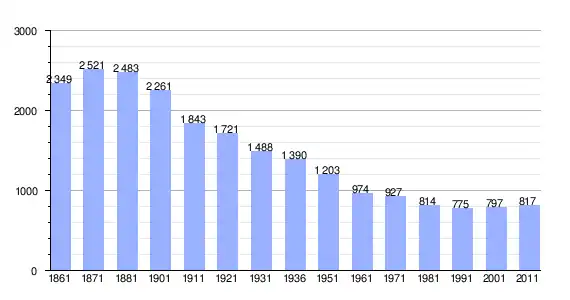 | Variação demográfica do município entre 1861 e 2011[3] |