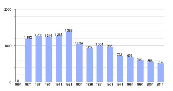 | Variação demográfica do município entre 1861 e 2011[3] |