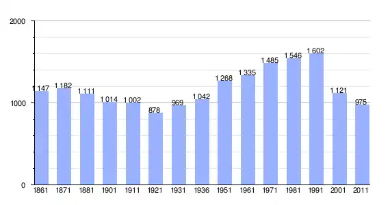 | Variação demográfica do município entre 1861 e 2011[3] |