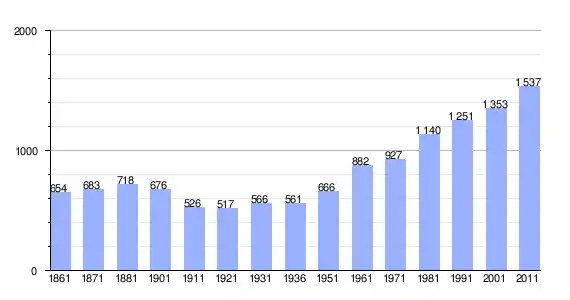 | Variação demográfica do município entre 1861 e 2011[3] |