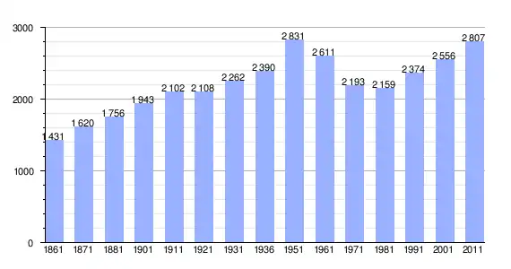 | Variação demográfica do município entre 1861 e 2011[3] |