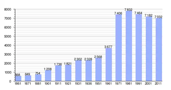 | Variação demográfica do município entre 1861 e 2011[3] |