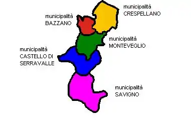 | Código postal | 40053 (Bazzano); 40050 (Castello di Serravalle, Monteveglio); 40056 (Crespellano); 40060 (Savigno) | |||
