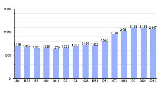| Variação demográfica do município entre 1861 e 2011[3] |