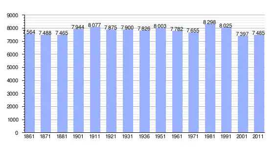 | Variação demográfica do município entre 1861 e 2011[3] |
