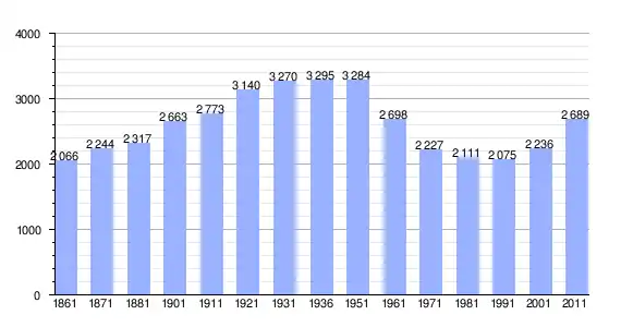 | Variação demográfica do município entre 1861 e 2011[3] |