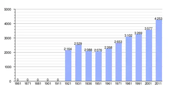 | Variação demográfica do município entre 1861 e 2011[3] |
