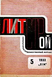 Capa de "Litstroy", uma revista de arte literária de Yermylov, 1933