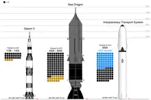 Uma proposta de projeto de 1962, Sea Dragon, previa um enorme foguete lançado pelo mar de 150 m de altura, capaz de elevar 550 t à órbita terrestre baixa. Embora a engenharia preliminar do projeto tenha sido feita pela TRW Inc., o projeto nunca avançou devido ao fechamento da Seção de Projetos Futuros da NASA.[68][69]