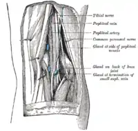 A veia poplítea tem uma trajetória ao lado da artéria poplítea e carrega sangue da articulação do joelho e músculos na coxa e da porção posterior da panturrilha em direção ao coração.