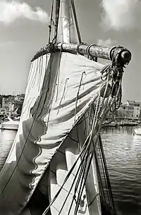 - Punho da escota — punho onde se prendem os cabos de manobra (12) (junto à escota da vela grande)