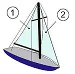 - Vela de estai ou um Genoa (2) — à frente do mastro e presa ao estai.