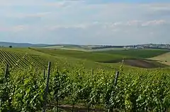 ![]() Velké Bílovice visto do norte. À distância, você pode ver a cidade Břeclav (10 km de distância). |