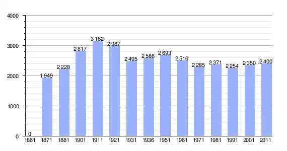 | Variação demográfica do município entre 1861 e 2011[3] |