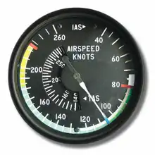 A medição e indicação da velocidade em relação ao ar é normalmente realizada a bordo de uma aeronave por meio de um velocímetro ("ASI") conectado a um sistema de Pitot estático. O sistema de Pitot estático é composto de um ou mais tubos de Pitot (ou sondas) voltadas em direção ao fluxo de ar que se aproxima para medir a pressão de Pitot (também chamada de pressão de estagnação, total ou de impacto) e uma ou mais portas estáticas para medir a pressão estática no fluxo de ar. Essas duas pressões são comparadas pelo ASI para fornecer uma leitura de IAS.