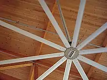 Um ventilador de teto (português brasileiro) ou ventoinha de teto (português europeu)[1][2] é um ventilador montado no teto de uma sala ou espaço, geralmente alimentado eletricamente, que usa pás rotativas montadas em um eixo para circular o ar. Eles resfriam as pessoas de forma eficaz, aumentando a velocidade do ar. Os ventiladores não reduzem a temperatura do ar ou a umidade relativa, ao contrário dos equipamentos de ar condicionado, mas criam um efeito de resfriamento ao ajudar a evaporar o suor e aumentar a troca de calor por convecção.[3] Os ventiladores podem adicionar uma pequena quantidade de calor à sala principalmente devido ao calor residual do motor, embora parcialmente devido ao atrito. Os ventiladores usam significativamente menos energia do que o ar condicionado, pois o ar de resfriamento é termodinamicamente caro.[3][4] No inverno, um ventilador de teto também pode ser usado para trazer o ar quente, que naturalmente sobe, de volta aos ocupantes. Isso pode afetar as leituras do termostato e o conforto dos ocupantes, melhorando assim a eficiência energética do controle climático.