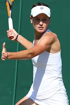 Em Wimbledon, ela foi derrotada pela eventual quarta finalista Viktorija Golubic por 11–9 no set final, na primeira rodada.[88] Em duplas, ela fez parceria com Elena Vesnina e, apesar de não ser cabeça-de-chave, elas eliminaram as cabeças-de-chave e as defensoras do título do Aberto da França e cabeças-de-chave Barbora Krejcíková / Katerina Siniaková e Caroline Dolehide / Storm Sanders a caminho da final, salvando match points em ambas as partidas.[89][90] Elas também já haviam derrotado a dupla Coco Gauff e Caty McNally, jogando sob as luzes da quadra central.[91] Elas perderam para as ex-jogadoras de duplas número um e terceiro par cabeça-de-chave, Hsieh Su-wei e Elise Mertens, em uma partida apertada de três sets, apesar de terem tido dois match points.[92] Com esta campanha de sucesso, ela entrou no top 20 em duplas em um ponto alto da carreira no 16º lugar do mundo em 12 de julho de 2021.