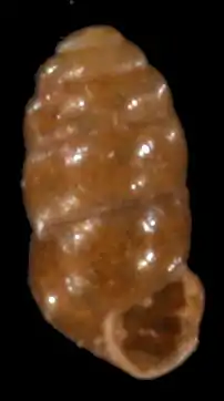 A concha é alongada e de formato oval. O ápice é obtuso (arredondado). A concha tem de 4 a 5 espiras (voltas completas). A abertura é semioval e possui de 5 a 6 dentes. O peristoma é pouco expandido e possui lábios grossos e esbranquiçados.[1]
