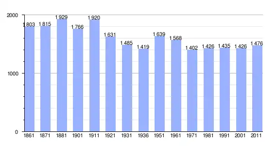 | Variação demográfica do município entre 1861 e 2011[3] |