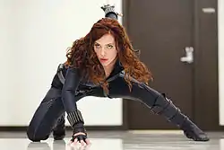 A atriz Scarlett Johansson interpretou a personagem Natasha Romanoff em nove filmes do Universo Cinematográfico Marvel, começando por Iron Man 2 (2010) e incluindo um filme solo, Black Widow (2021).