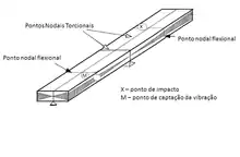 Portanto, as frequências torcionais surgem quando um corpo de prova no formato de barra sofre um impacto fora do centro (onde temos um ponto nodal).