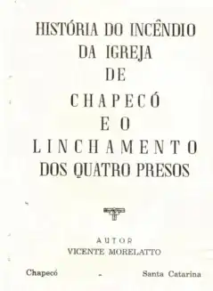 - MORELATTO, Vicente. (1954). História do incêndio da igreja de Chapecó e o linchamento dos quatro presos. Chapecó: [s. n.].