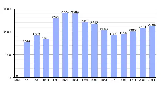 | Variação demográfica do município entre 1861 e 2011[3] |
