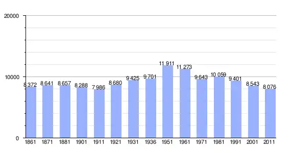 | Variação demográfica do município entre 1861 e 2011[3] |