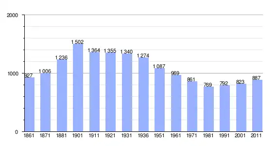 | Variação demográfica do município entre 1861 e 2011[3] |