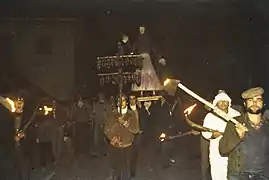 Procissão de S. Silvestre, 2002. - Carnaval - Antigamente com grandes tradições na aldeia, onde se incluía a Queima do Compadre (ainda que raramente se realizasse), a cargo das raparigas solteiras, e a Queima da Comadre (que se realizava todos os anos), da responsabilidade dos rapazes, bem como os célebres “apupos”, pisões e paneladas que agitavam as noites de Vila Dianteira. No dia de Entrudo, jogava-se ao Lencinho e ao Jogo do Cântaro de Barro, no adro da capela de São Silvestre, enquanto se esperava pelos Ranchos e Cegadas de Carnaval que visitavam a aldeia.