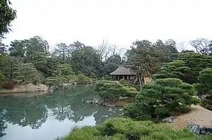 Os jardins são obras-primas da jardinagem japonesa e as construções, os maiores empreendimentos da arquitetura japonesa. O palácio possui um shoin, uma casa de chá e jardins para passeios. Além disso, providencia uma inestimável janela para vilas de príncipes do período Edo.