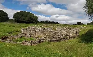 - Termas, sendo que a investigação conduzida nestas permitiu identificar o hipocausto e dois tanques, de água fria e quente, revestidos a opus signinum, ao mesmo tempo que se determinava a ligação entre o domus e o frigidário;