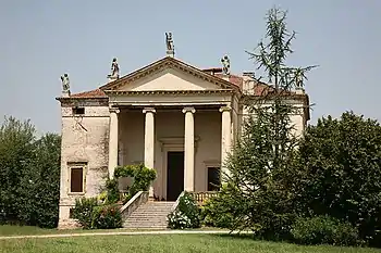 Parece que a execução foi pouco controlada por Palladio e, assim como este pórtico se deve indubitavelmente à sua mão, a posição das janelas são uma variação em relação ao conselho do próprio arquitecto em I Quattro Libri dell'Architettura, onde adverte contra a colocação de janelas próximo da esquina dum edifício por receio que debilitasse a estrutura, mostrando a villa, de facto, sinais de abatimento nas esquinas[1].