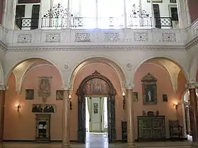 - O pátio manteve a sua vocação de galeria e apresenta um conjunto de obras de arte medieval e renascentista, no qual se encontra um quadro atribuido ao veneziano Carpaccio (cerca de 1460-1525), representando um condottiero.