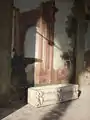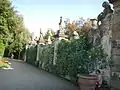 No exterior, encostadas à parede da villa do lado do teatro, foram arranjadas as estátuas setecentistas de Barbieri, antes instaladas no interior da habitação.