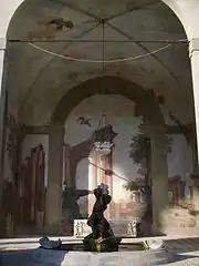 Foram criados, a oeste do bloco principal da villa, dois aviários, dos quais um foi chamado de "loggia del bacchino" ("loggia do Baco") pela presença duma estátua em bronze de Baco que deita água num pequeno tanque. Estes são unidos por um grandioso muro, com um grande arco, ao centro, fechado por um portão de madeira, com volutas e vasos, flanqueado por duas grandes estátuas em pietra serena representando personagens mitológicas.