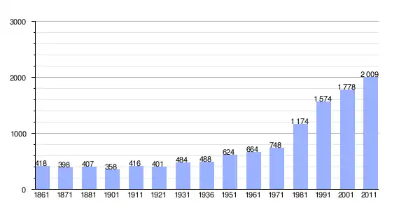 | Variação demográfica do município entre 1861 e 2011[3] |