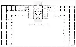 De extraordinária simplicidade, quase ascético, o edifício é um puro volume construído em tijolos e gesso, onde qualquer elemento decorativo é banido e o raro emprego de pedra trabalhada é limitado aos elementos arquitectónicos mais significativos (como janelas e portões) e às partes estruturais.