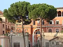 Em 16 de dezembro de 1933, o conde Ascanio Savorgnan di Brazzà, sobrinho de Pietro Savorgnan di Brazzà, famoso por suas viagens exploratórias na África e já proprietário de várias residências em Roma, adquiriu do príncipe Urbano Barberini uma parte de seu jardim localizada na outra ponta da rampa central de seu palácio para construir no local um palacete para sua família. O edifício neoclássico é um dos muitos exemplos de residências senhoriais civis da época fascista. Articulado em quatro pisos, seu interior é finamente decorado com portais de mármore e estuques simples que contribuíram para transformá-lo num palácio histórico elegante e prestigioso. A villa, através de um artifício arquitetônico, foi ligada através de um corredor e da chamada "Galleria Vetrata", aos antigos estábulos Barberini, que também foram comprados pelos Savorgnan di Brazzà[1].