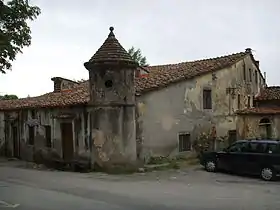 O eixo principal da villa foi sublinhado por uma fila de ciprestes, de cerca de 700 metros, que exaltam em perspectiva a fachada do edifício. A abertura foi recuada em relação à berma da estrada, dando espaço a uma faixa relvada para enfatizar e por em evidência este percurso. No extremo do caminho, na proximidade dum majestoso portão que dá acesso à propriedade, está situado uma pequena aldeia, em tempos destinada ao pessoal.