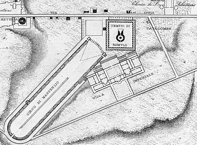 A propriedade passou para o domínio imperial e foi a partir deste ponto que, no início do século IV, Maxêncio ordenou a construção da villa, do circo e do mausoléu da família, no qual foi sepultado primeiro seu filho Valério Rômulo, morto ainda adolescente.