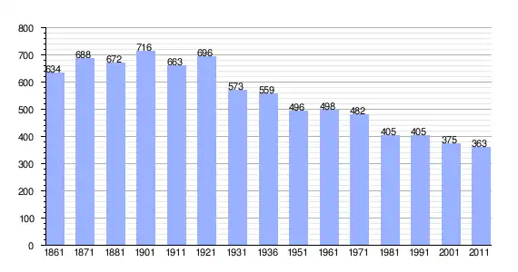 | Variação demográfica do município entre 1861 e 2011[3] |
