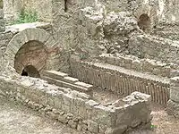 - Complexo termal, com acesso a partir da zona noroeste do peristilo quadrangular.