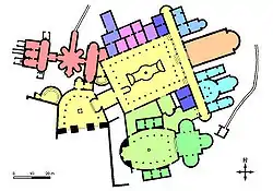 - Complexo do triclínio precedido dum peristilo oval, circundado, por sua vez, por um grupo de salas;