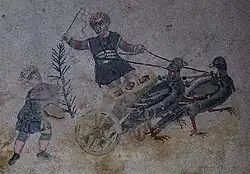 - a antecâmara apresenta o mosaico do chamado Circo das Crianças (Circo dei bambini): na arena competem quatro bigas, puxadas por aves e guiadas por aurigas infantis; uma criança encarregada da premiação carrega na mão um ramo de palma para o vencedor. A crítica mais recente vê nesta cena uma alegoria às Estações, uma referência à passagem do tempo como mesmo significado simbólico dos círculos com carros do Sol e da Lua no Arco de Constantino;