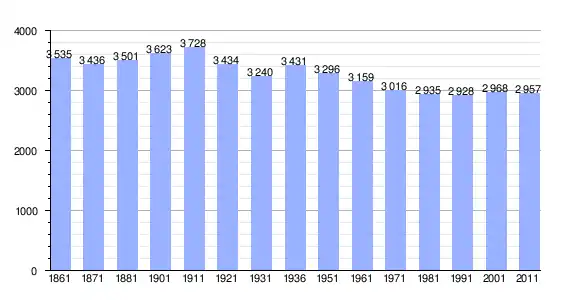 | Variação demográfica do município entre 1861 e 2011[3] |