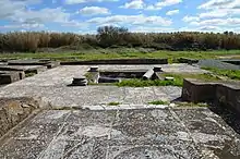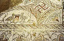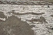Entre os vários painéis de mosaicos, destaca-se um no fundo de um tanque doméstico, no centro de uma sala, por ser o único de tema aquático em toda a villa.[8] Datando de meados do século IV, foi composto em cerâmica e em calcário policromático, e representa várias espécies marinhas, como dois peixes, uma moreia e os tentáculos de um polvo ou de uma lula.[8]