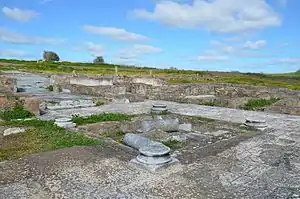 Uma das principais peças no conjunto de Pisões é uma lápide, encontrada por Fernando Nunes Ribeiro em 1967, e que seria uma árula, um tipo de pequeno altar, com a inscrição: «Saluti pro / G(aio) Atilio / Cordo N(---) Cat/ulus serv(us) / votum s(olvit) a(nimo) l(ibens)» (À Saúde. Para o nosso Gaio Atílio Cordo, o servo Catulo cumpriu o seu voto de livre vontade).[17] Desta forma, a lápide era dedicada a Salus, deusa romana da saúde, e inclui o nome de Caius Atilius Cordus, provavelmente a família que era proprietária da antiga villa, informação que é relativamente rara entre as estruturas deste tipo na Península Ibérica.[7]