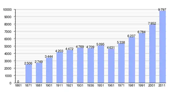 | Variação demográfica do município entre 1861 e 2011[3] |